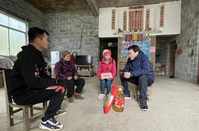 慰问组到达太平村后与驻村第一书记、村“两委”班子成员进行深入交流,认真听取了驻太平村乡村振兴第一书记的工作汇报以及下一步工作计划,并送上春节慰问品与新春祝福。随后,公司谭机永书记和谭国鹤经理入户与结对帮扶贫困户进行了亲切交谈,详细了解脱贫后的生产生活情况、身体状况及目前存在的困难等,嘱咐他们要积极发展生产,早日实现致富,并给他们送上了慰问金和慰问品以及新年祝福。