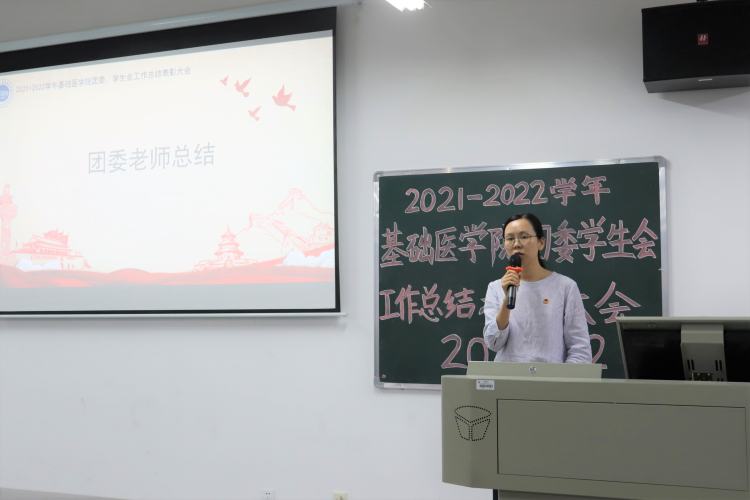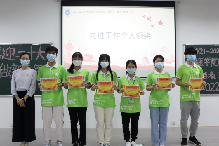 会议伊始,员工会轮值主席蓝利同学总结汇报了本学年开展的各项工作和活动,分析了目前的问题和不足,对未来的工作做出了新的规划,为我们今后的工作指明了方向。接着,参会老师为荣获优秀干部和优秀先进个人颁发了奖状并合影留念。最后,梁福秋老师用感谢、抱歉、期望等关键词对2021-2022学年的工作与交流进行总结分析,希望同学们在新的学年能够“心有所信,方能行远”,愿大家无问西东,不负韶华,在实现中华民族伟大复兴的赛道上踔厉奋发、勇毅前行。