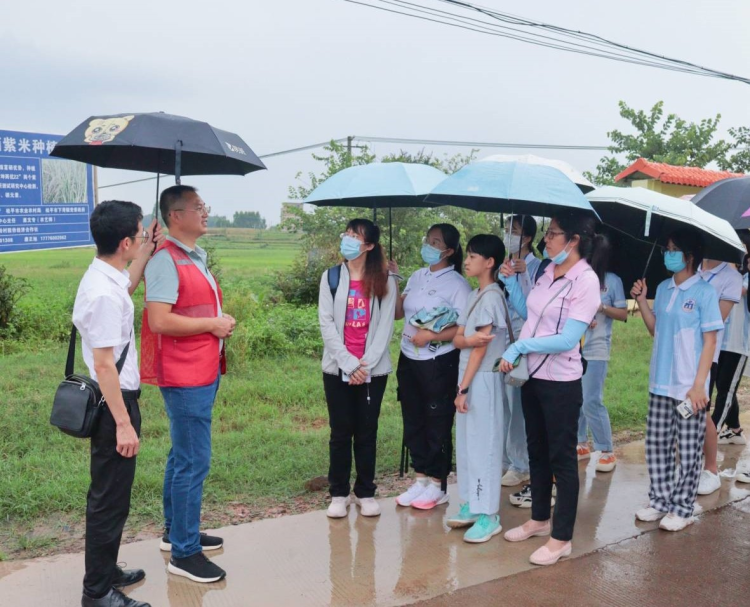 7月5日至7月6日,“青春献礼二十大,乡村振兴新时代”主题乡村振兴实践团深入桂平脱贫乡镇,参观学习龙岭村紫米生产基地,了解农业农村现代化;走访参观下湾镇卫生院,与基层医生进行交流,考察了解乡镇医院组织与结构和农村三级卫生服务体系;走访慰问龙岭村、下湾村老党员,深切感悟中国共产党人坚定理想信念,为建设美丽中国贡献一生的初心和使命;下湾镇人大主席邓福光主席向同学们分享了自己的乡村振兴感悟和工作学习经验,用“格局、学习、务实、细节”四个词语勉励大家“不畏艰难勇担当,青春奋斗正当时”。