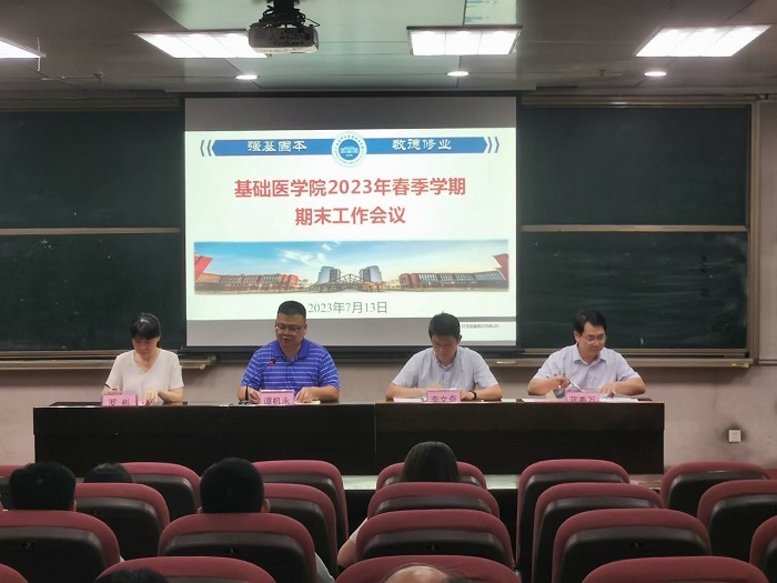会上,李文奇副书记对做好员工暑期实践活动与安全稳定工作进行布置,并再次加强教职工假期廉洁教育提醒。罗彬副经理对分管的教学工作进行总结,对下学期教学工作和本科公司产品审核评估工作进行部署。蓝秀万副经理对科研工作、研究生管理、一流团队建设中期评估和基础医学中心实验室仪器共享平台使用等方面进行布置和说明。