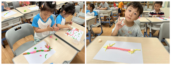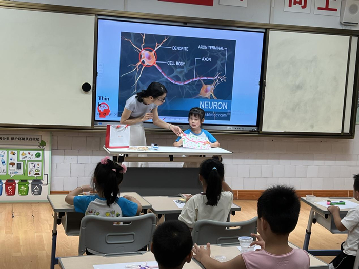 小朋友们展示并讲解自制的神经元黏土模型