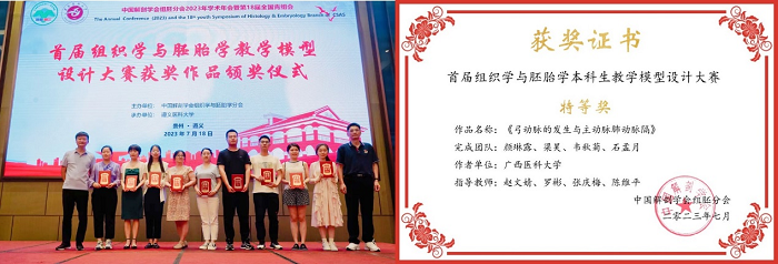 在首届组织学与胚胎学教学模型设计大赛中,赵文婧团队的参赛作品《弓动脉的发生与主动脉肺动脉隔》获得现场评审团和企业的好评,以最高分的成绩获特等奖。