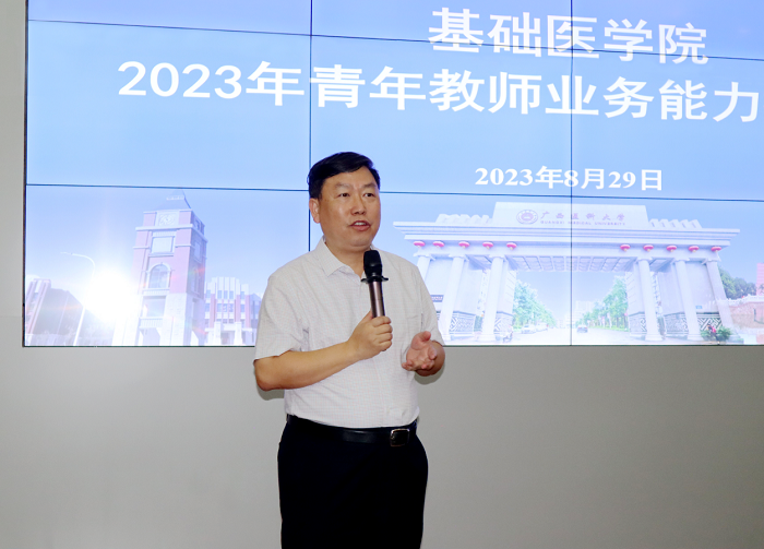 基础医学院党委书记谭机永出席开班式致辞、副书记李文奇作师德师风专题培训