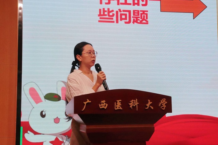 会上,梁福秋老师进行了理论宣讲,并带领团干部学习团支部工作条例等,强调了理论学习的重要性和必要性,结合实际读原著学原文悟原理,力戒形式主义。随后,团委组织部杨一傲同学、科研与社会实践部邓俊洋同学、宣传部李誉华同学、“医心医意”志愿活动中心卢玉露同学、多媒体技术部刘宇航同学分别对团务、“第二课堂成绩单”、老员工社区实践计划、志愿服务、团的宣传等内容进行讲解。“十佳团支部书记”闭德发同学和“优秀共青团干部”莫东利同学分别结合自己的实践经历为大家作工作经验分享。会议期间还进行了党团理论和团务工作知识竞答,现场同学积极思考、踊跃参与,取得了良好的效果。