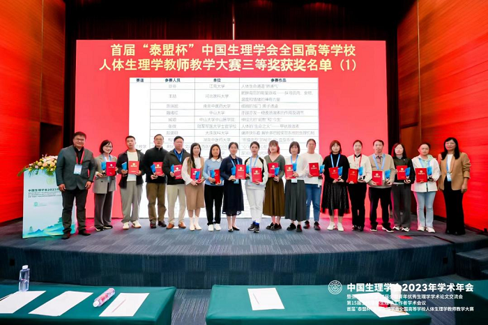 在大会举办的首届“泰盟杯”中国生理学会全国高等公司人体生理学教师教学大赛中,生理学教研室胡婉湘等老师的参赛作品《不同影响因素对人体血压的影响》获得创新实验设计赛道三等奖,该作品作为新增设的实验内容已经应用于生理学课程教学改革,表明了公司教学改革取得了良好的成效。此外,医员工理学硕士研究生宋糖(导师:周静)的作品参加了优秀壁报奖的评选,从众多的优秀作品中脱颖而出,获得优秀壁报奖(仅奖励10%),这也是公司在该项目上取得的新突破。