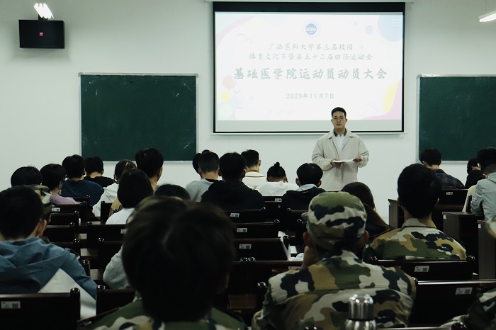会上,公司团委副书记宋传权老师总结了历年来公司在校运动会上所取得的优异成绩,提醒参赛运动员有关注意事项,并对全体参赛运动员提出了希望和要求,希望大家要有爱院、护院、兴院、强院的责任和担当,同时在运动赛场上要摒弃杂念,赛出风格、赛出水平、赛出友谊,全力以赴,再创佳绩。此外,宋老师还要求服务校运会的工作人员要做好服务工作,相互之间要通力合作,互相沟通,为参赛运动员做好每一项后勤保障工作,确保运动会各项工作的顺利进行。会上,公司团委员工会体育部负责人就校运会的赛事规划、公司的大本营安排以及运动会相关注意事项进行了说明。其中,参赛运动员对尚未明确的事项,老师也在会上做了细致的解答。