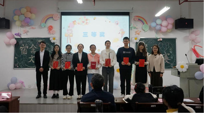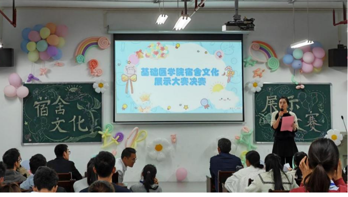比赛伊始,公司党委副书记李文奇致辞,他表示,宿舍文化是校园文化的重要组成部分,希望同学们凝心聚力,共同打造文明和谐、友爱互助的宿舍“家文化”,增强主人翁意识,提升自我管理能力,以优良舍风带动班风、学风建设,积极引领员工社区新风尚。接着,13位宿舍代表依次展示了丰富多彩的宿舍文化,如东六213宿舍的“白衣蓝海一家亲”,以海洋为主题,呼吁同学们保护环境,同时也鼓励大家勇敢追梦,奔赴自己的星辰大海;东五433宿舍的“医者仁心,求是奋发”,立足医员工的使命担当,分享舍友共同学习、共同进步、拼搏奋进的青春故事。赛后辅导员易姗姗进行总结,充分肯定了同学们参与宿舍文化建设的积极性和展现出别具一格的宿舍文化,希望同学们继续发扬优秀宿舍文化,将宿舍文化建设经验运用到今后的学习和生活中,充分发挥宿舍文化的育人功能,实现自我成长。