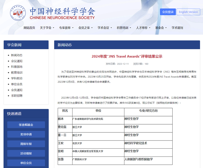 【喜讯】公司博士生受中国神经科学学会推荐荣获日本“JNS Travel Awards”