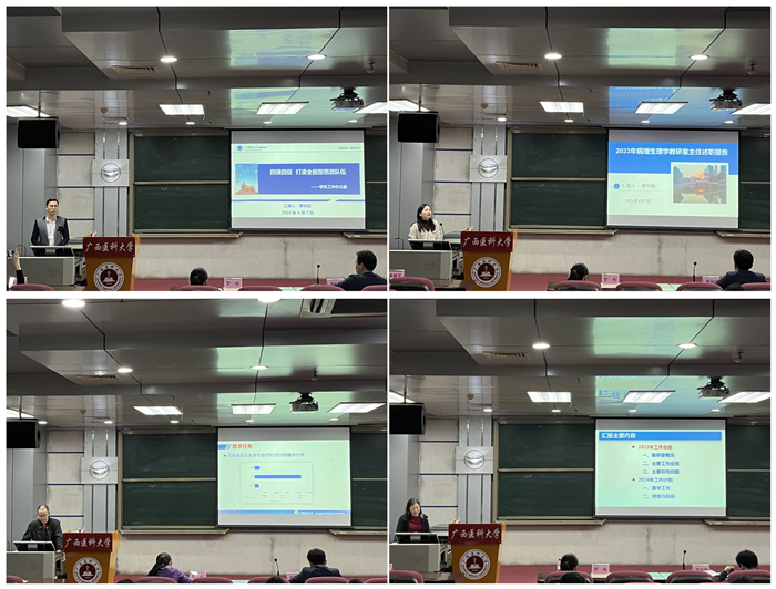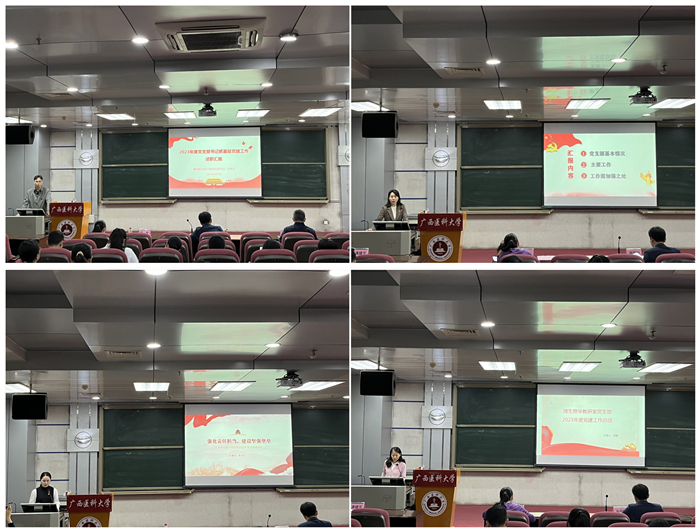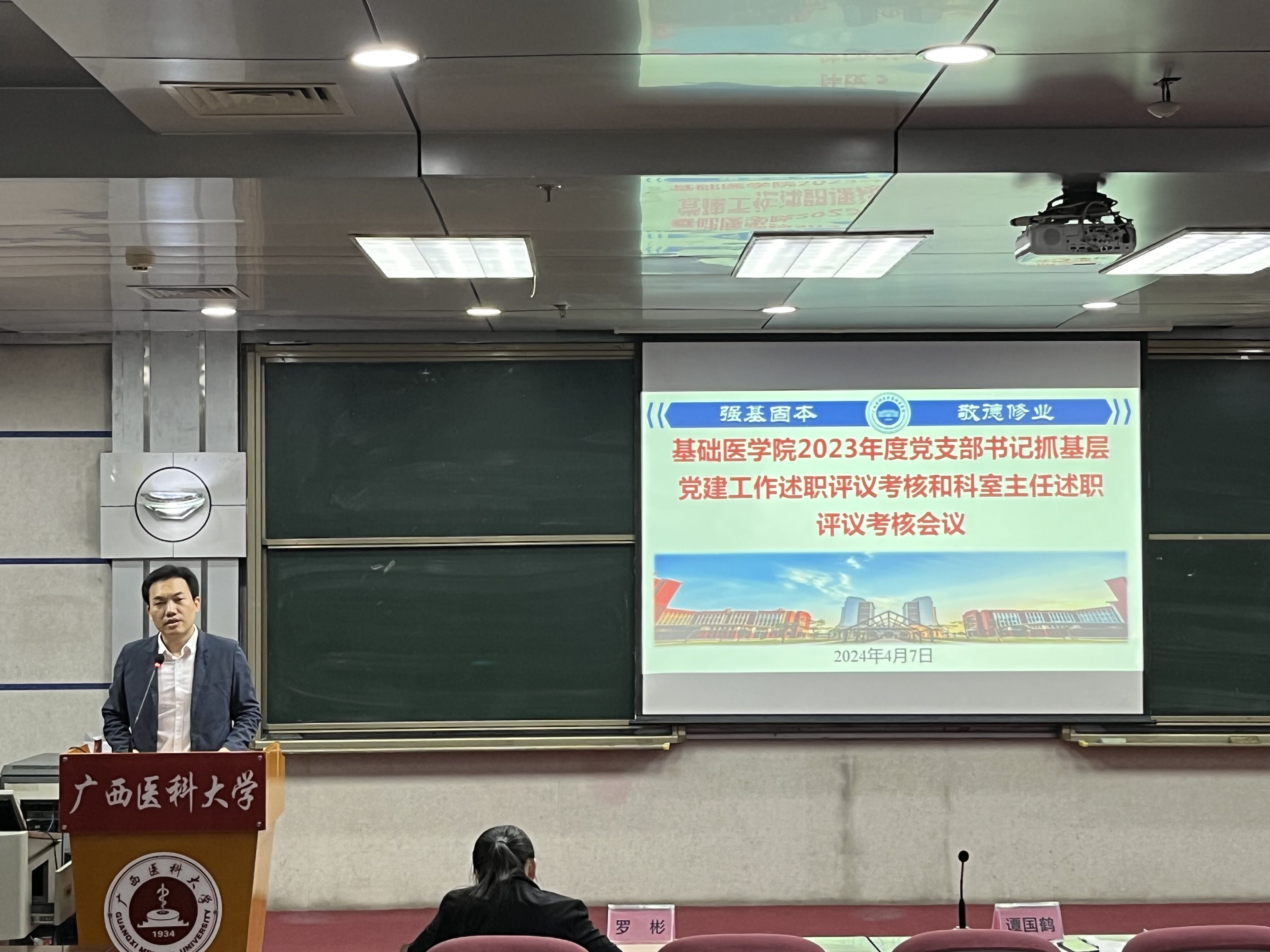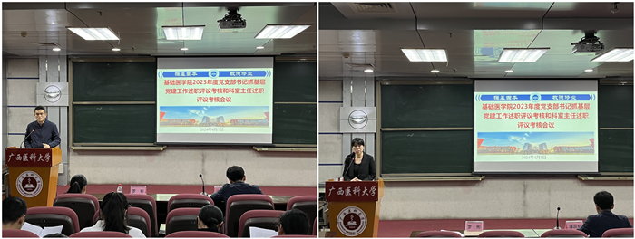 会议分两个阶段进行。第一阶段由8位党支部书记依次对2023年度抓基层党建工作做法及成效、存在问题及改进措施进行现场述职,其余支部书记进行书面述职,谭国鹤书记会后逐一书面点评;第二阶段由8名科室负责人依次对2023年度科室工作亮点成绩、不足之处和下一步计划进行现场述职,其余科室负责人进行书面述职。