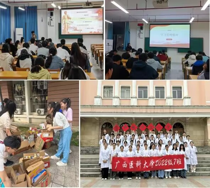 三月以来,williamhill官方网站团委指导团支部开展“弘扬雷锋精神——让青春在奉献中绽放”主题团日活动,聆听雷锋故事、宣讲雷锋精神、回收废旧变卖后资助公益项目;到武鸣区文化广场、金福名城小区、和平解放社区、红岭社区、新兴社区等落实老员工社区实践计划,为群众进行防艾宣传、义诊服务;到武鸣狮子山公园、明秀园等进行义务清扫、健康科普等;“医心医意”志愿活动中心组织“喜迎校庆,随‘锋’而行”志愿服务,为社区居民提供量血压、艾灸、按摩等服务,与社区内小朋友共同创作医大90周年校庆绘画等。另外,评选表彰了26名2023年度“员工优秀志愿者”,激励基础学子传承雷锋精神,争做志愿先锋。