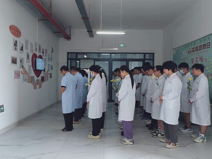 首先,师生们齐声朗诵诗歌《致敬实验动物》,并向在生理学、病理生理学、药理学等科研领域贡献生命的实验动物默哀。
