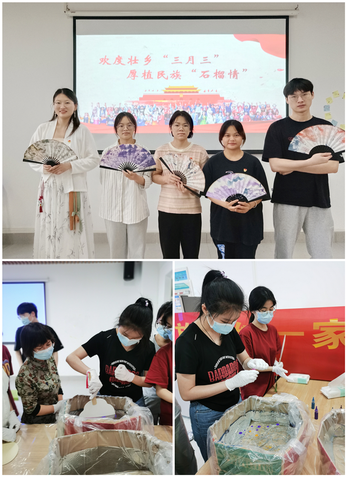 12日,公司在明德楼开展“欢度壮乡‘三月三’厚植民族‘石榴情’”非遗文化创意手工艺品体验活动,共同体验非遗艺术——漂漆扇和印章篆刻艺术。同学们创意创新,亲手制作出一扇扇各具特色的漂漆扇艺术作品,在亲身实践中感受中华优秀传统文化的魅力,“沉浸式”感受传统非遗文化工艺与现代创意的完美结合。