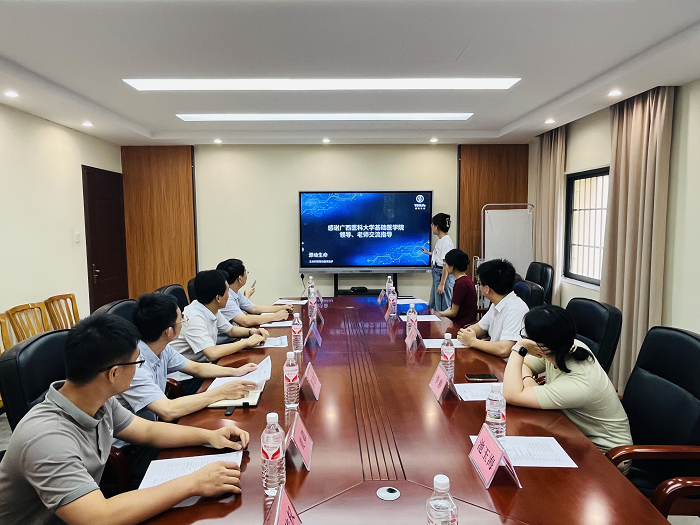 在座谈交流会上,公司与会人员分别介绍了公司生物技术专业、公司产品以及2024届毕业生情况。源动生命科学研究院(南宁分院)就单位基本概况和岗位人才需求等情况进行了介绍。双方就实习就业一体化培养、培养基地建设等方面进行了深入的探讨。会后,公司一行参观了研究院的办公场所和研发实验室。