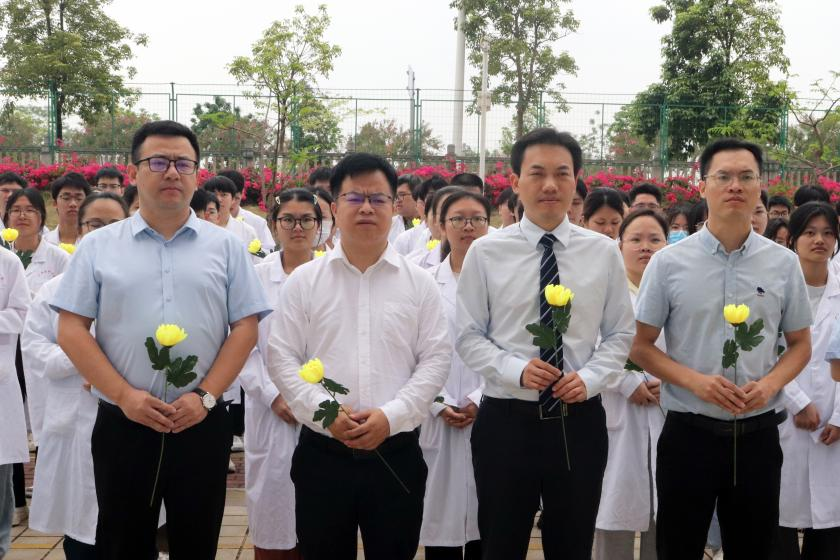 武鸣校区管理中心常务副主任黄宗海、基础医公司党委书记谭国鹤、副经理战廷正、员工工作办公室主任罗长钦等出席了本次活动,生理学教研室全体教师、2023级临床医学相关专业及2024级生物技术、临床药学和药学等专业员工约1000人参与了纪念活动。